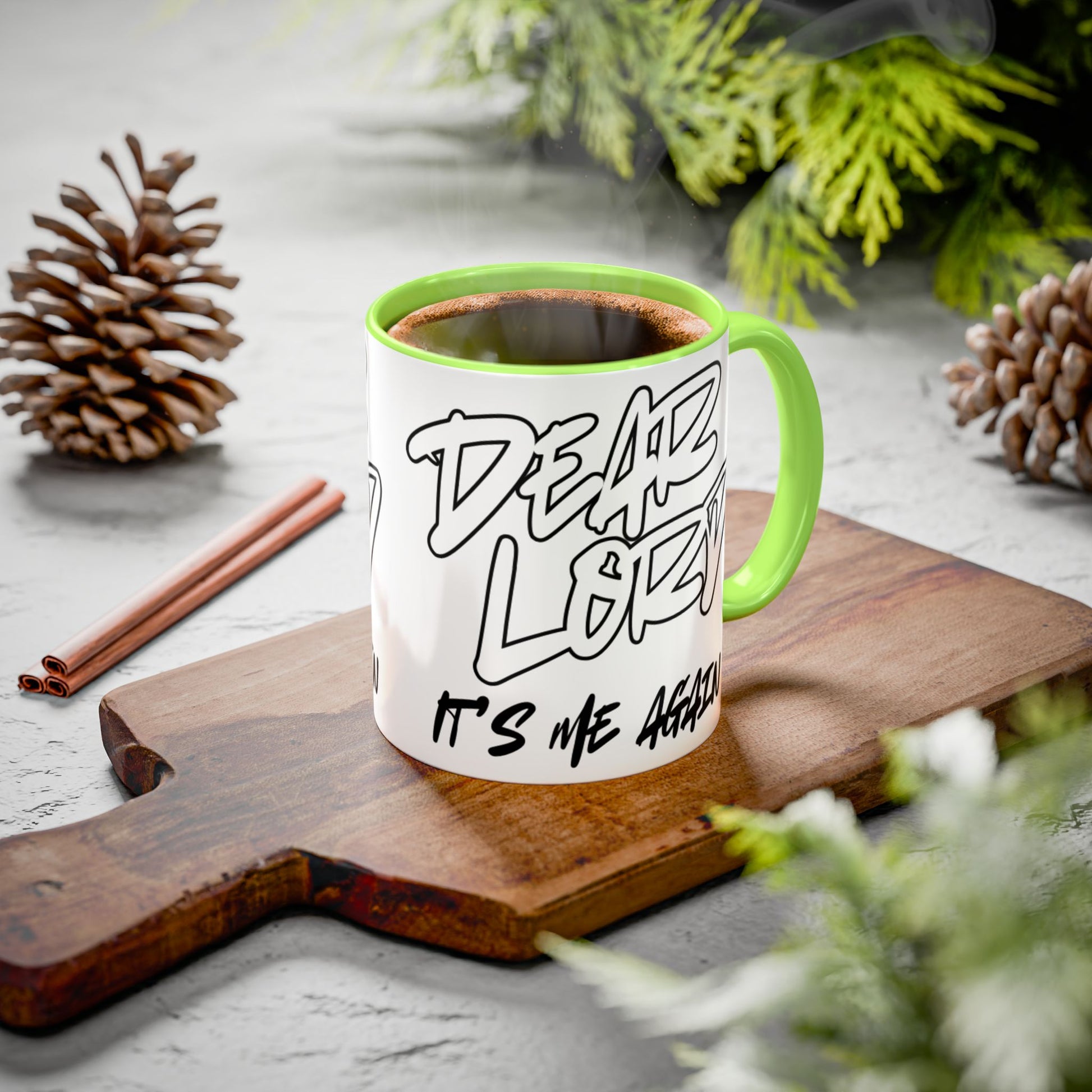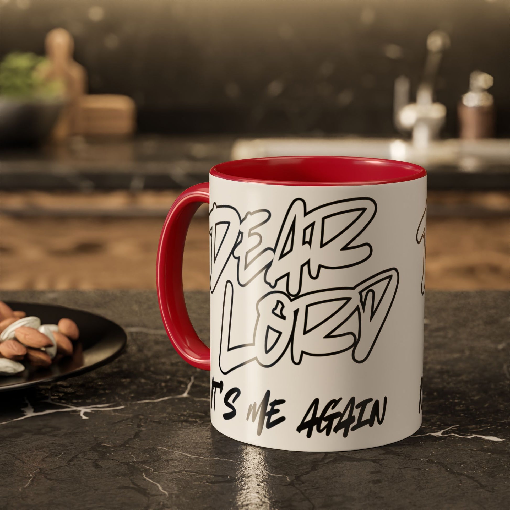 Brighten up your morning coffee routine with the Dear Lord Its Me Again Colorful Ceramic Mugs. These vibrant 11oz mugs feature colorful details with 4 handle and interior color options. Suitable for daily use, they are dishwasher and microwave safe, making them a perfect gift for coffee lovers and those who appreciate colorful designs. Relevant for birthdays, holidays, or as a pick-me-up gift. Product features - Vibrant colors for bright designs - Dishwasher and microwave safe for convenience - Colorful details with 4 color options - Glossy ORCA coating for bright color transfer - 100% glossy ceramic material Care instructions - Clean in dishwasher or wash by hand with warm water and dish soap